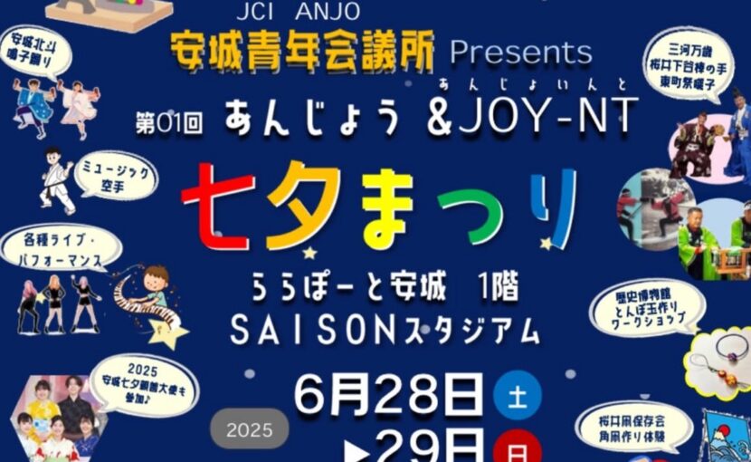 6月28日29日に、ららぽーと安城にて6月例会「第01回 あんじょう &JOYNT 七夕まつり」を開催します!